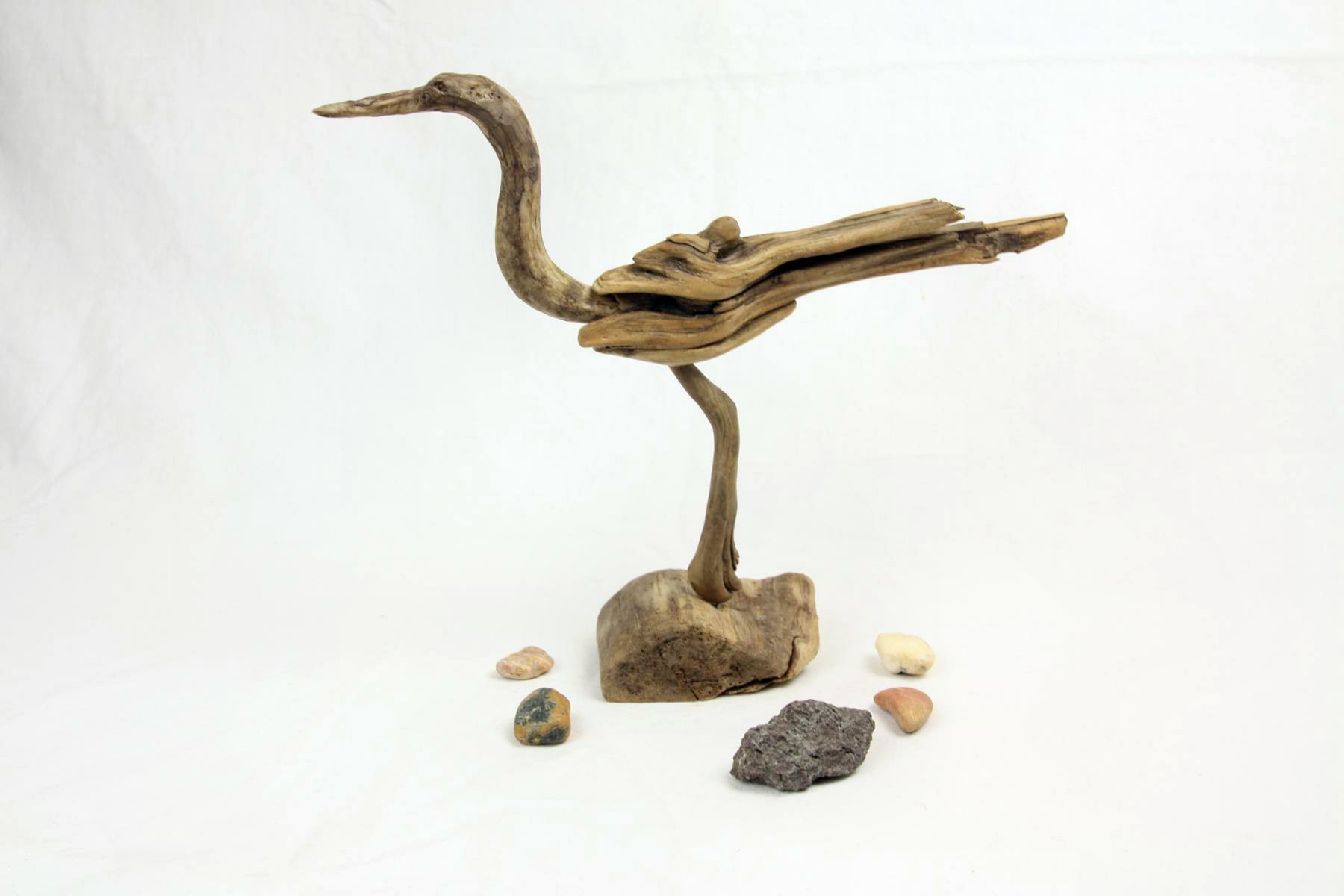 Wunderschöner Treibholz Vogel. Ich sehe darin einen Fischreiher. Gefertigt aus vier Stück Treibholz.