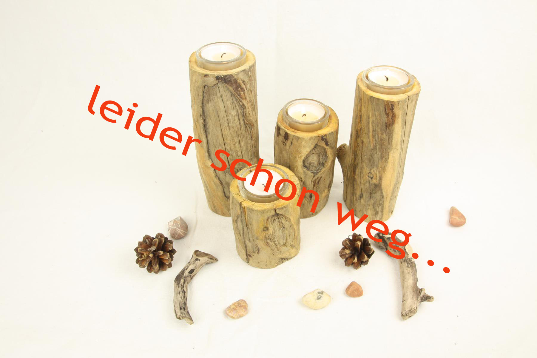 Versehen wurde das Treibholz mit 4 Teelichtgläsern. Behandelt wurde das Schwemmholz mit Teaköl und Bienenwachs.