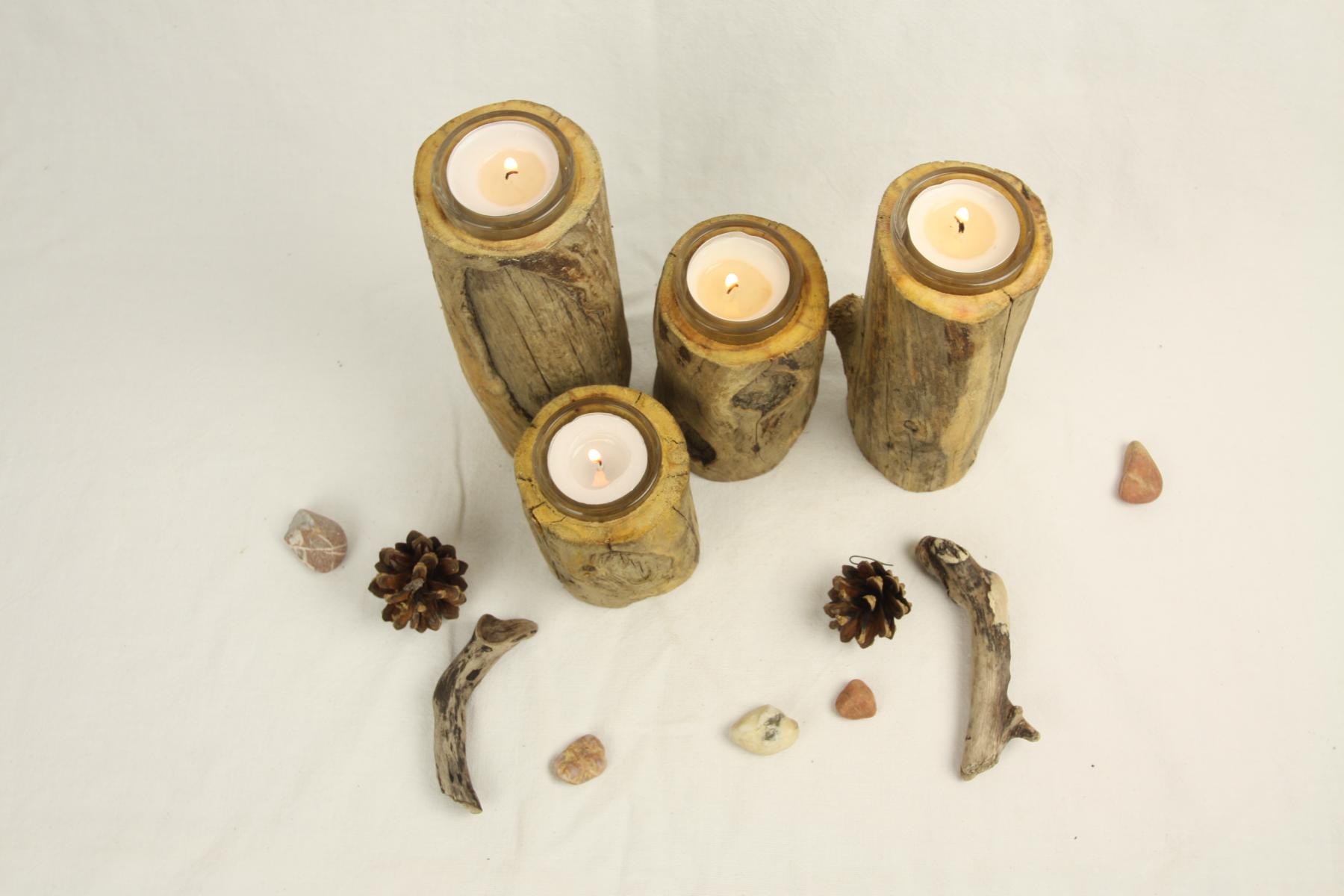 Treibholz Teelichthalter 4er. Gefertigt aus einem Treibholz Stamm.